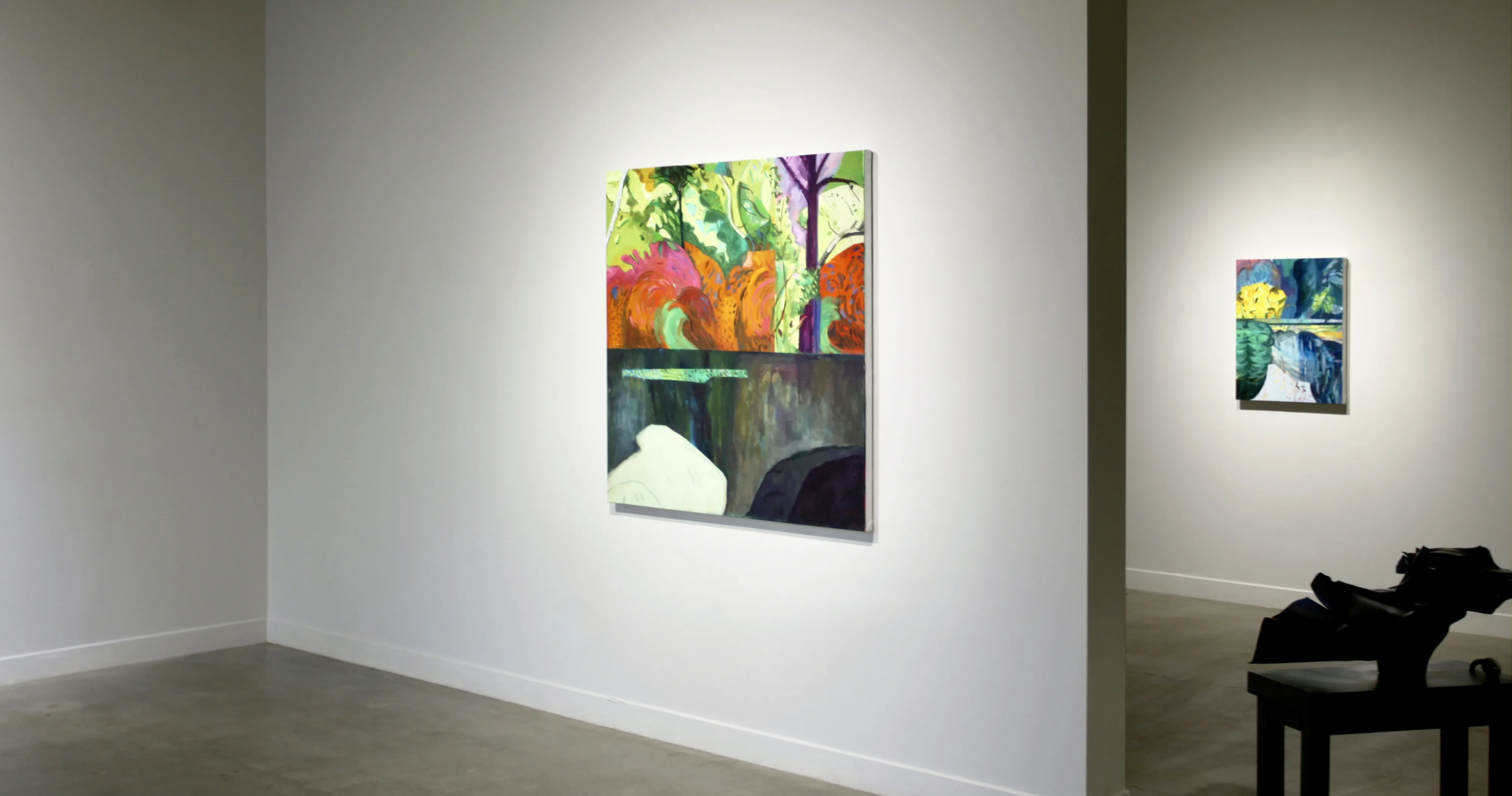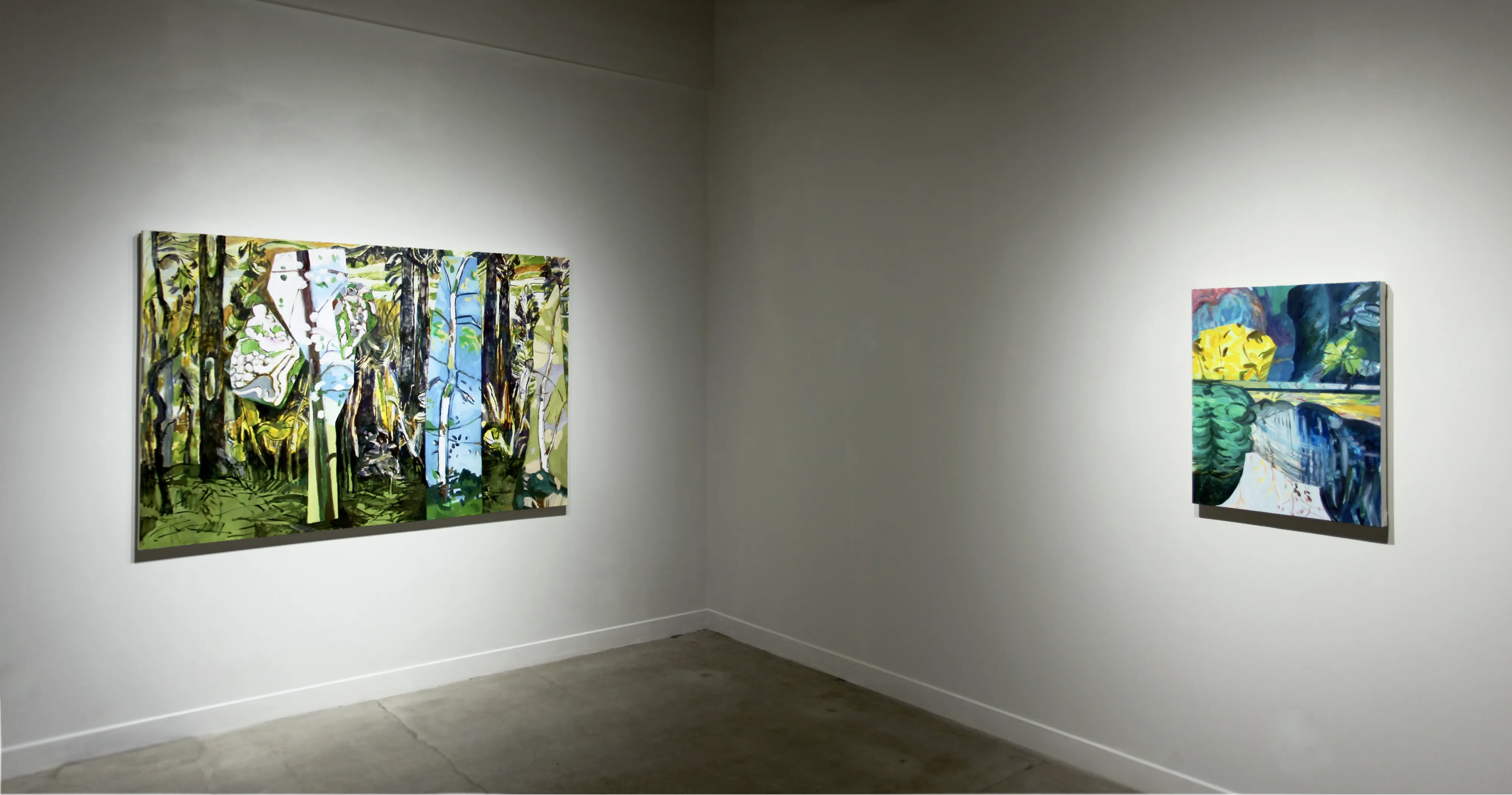 Monica Tap’s paintings gently invite viewers into a space of heightened awareness. These are landscapes, clearly, but without the traditional forms of taming, framing and singular address that the genre of landscape painting usually invokes. While renaissance linear perspective posits a specifically located, singular observer, Tap’s paintings call for multiple and shifting points of view. (....)