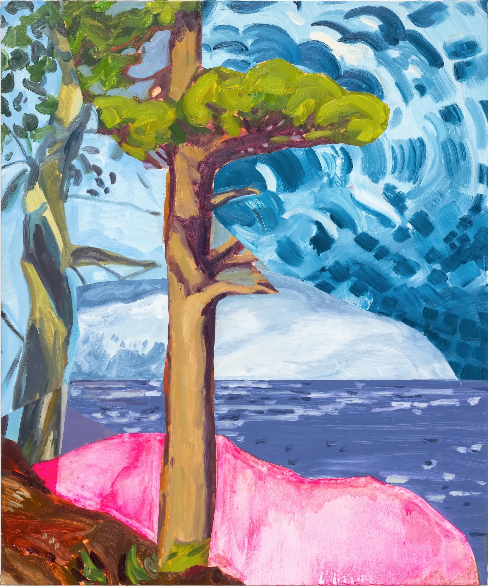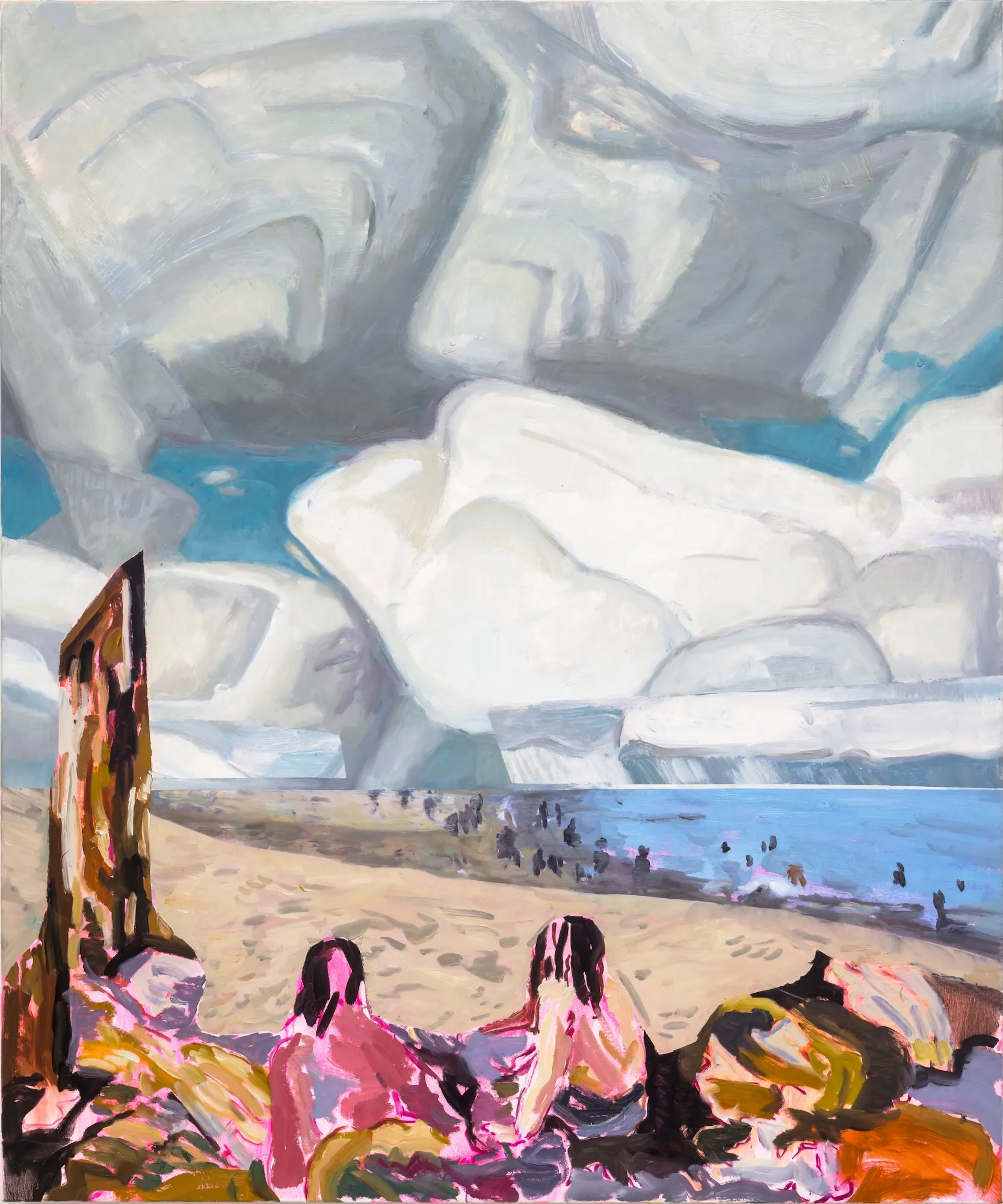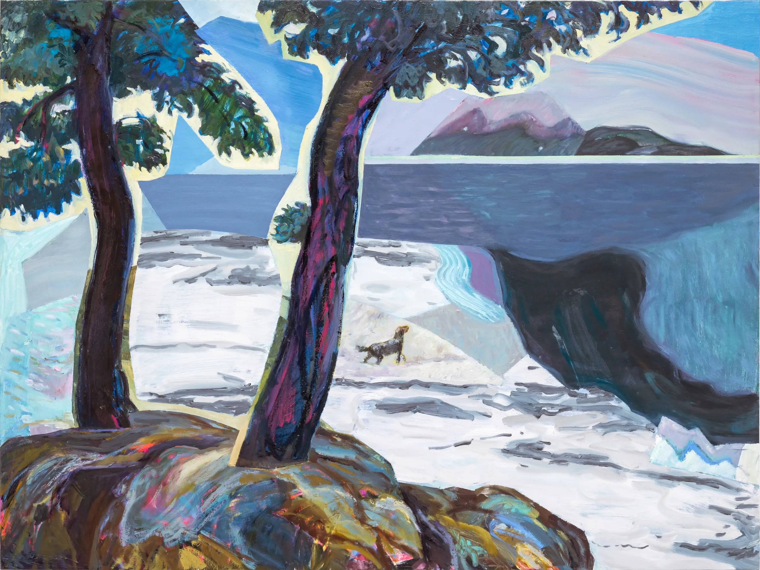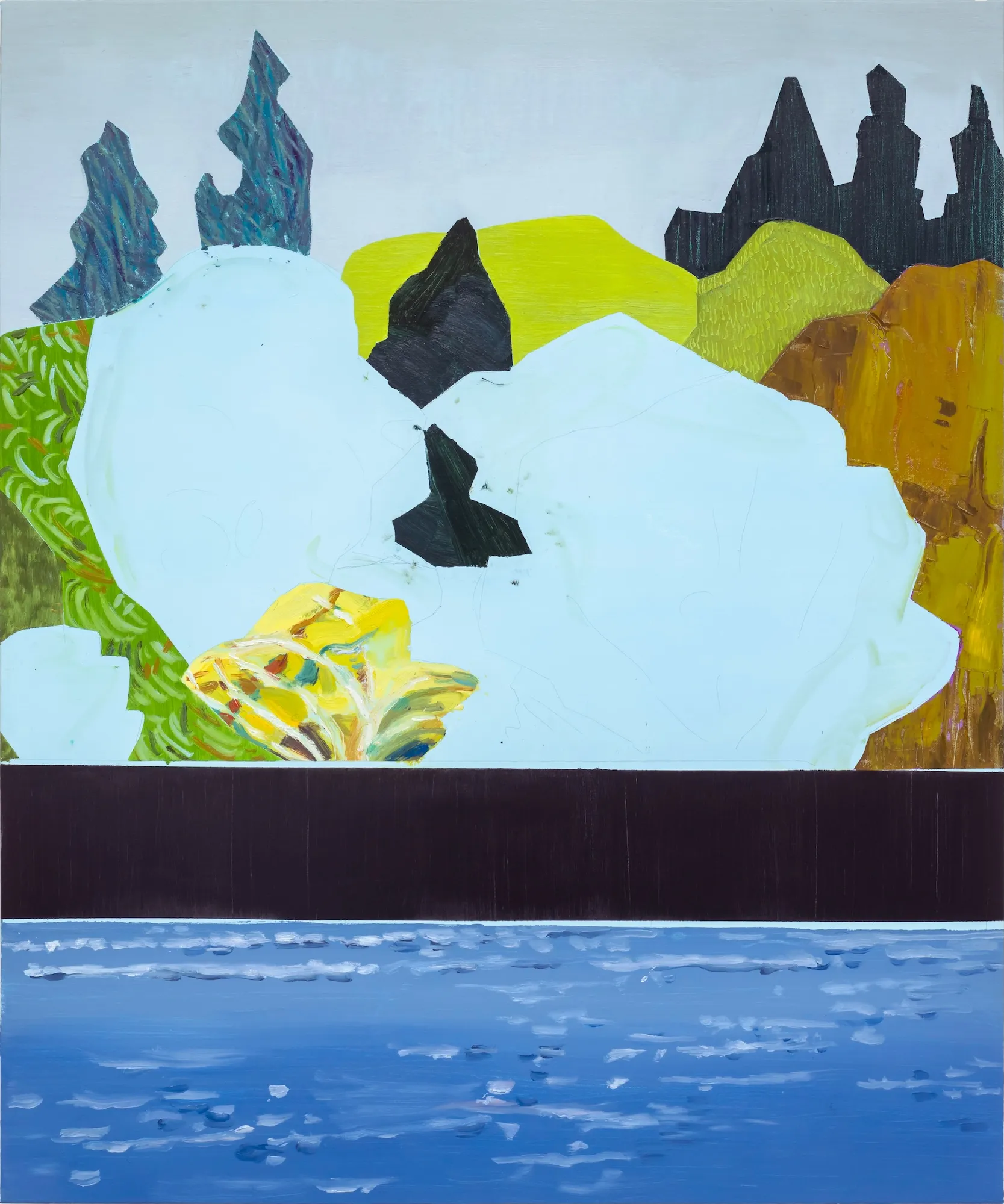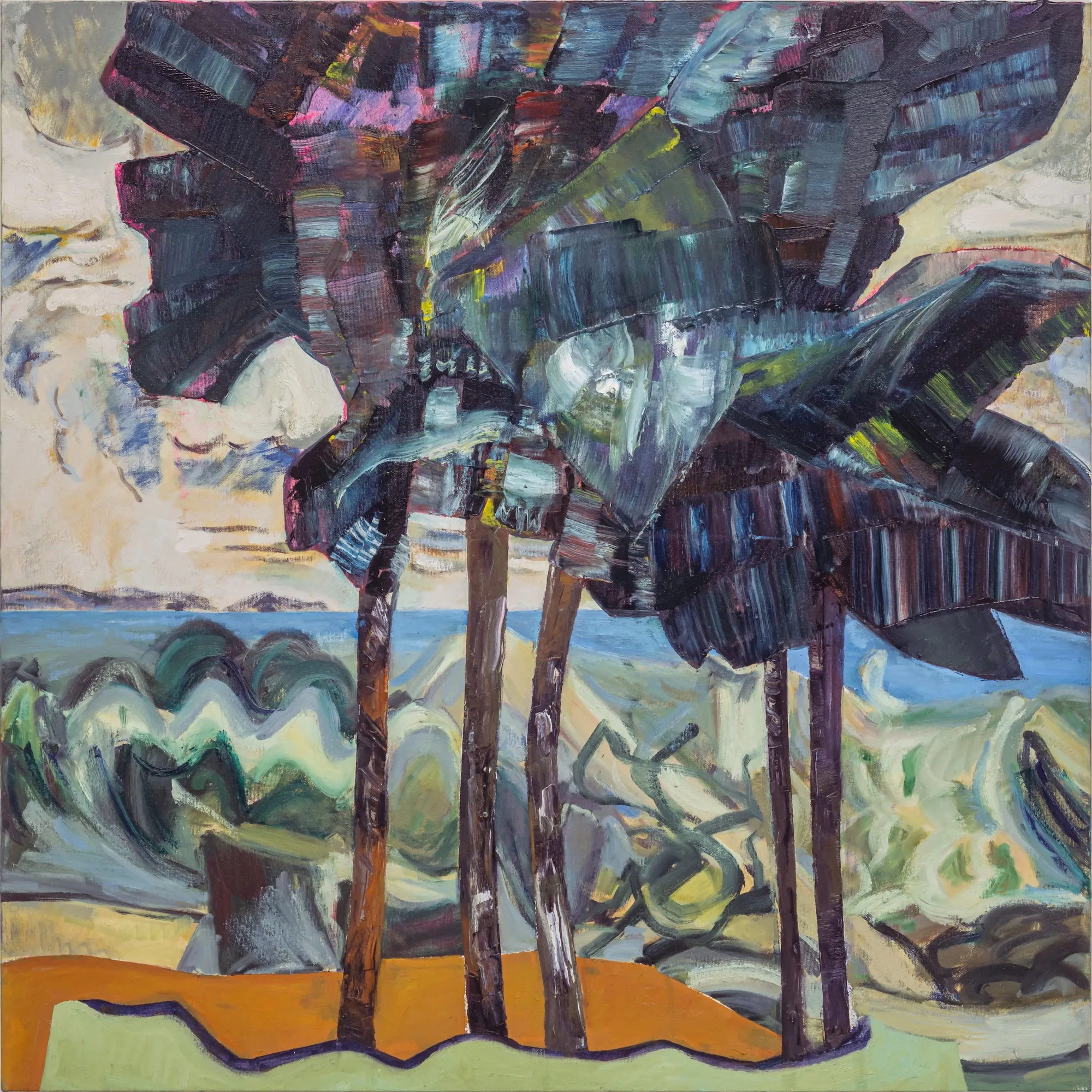 These paintings grew out of my experience of Ontario Place's West Island, a mature forest and public park that faced demolition. I work by harvesting images from decommissioned auction catalogues, primarily of Canadian art, tearing them apart and reassembling the fragments into collaged compositions that become the source for my paintings. The titles come from W.S. Merwin's poem Unchopping a Tree, which describes the impossible task of reconstructing a felled tree, leaf by leaf, spider web by spider web.When 850 trees were slated for removal, Merwin's meditation on nature's complexity felt urgent. On October 3rd, the forest was razed overnight. The following morning, as the last trees fell, I read the poem aloud. That moment is captured in the video Reading Merwin at Ontario Place. Some of these paintings were made after that loss, reflecting on what it means to witness destruction and to try, however futilely, to put things back together. In several works, small figures stand among the trees, dwarfed by the task.